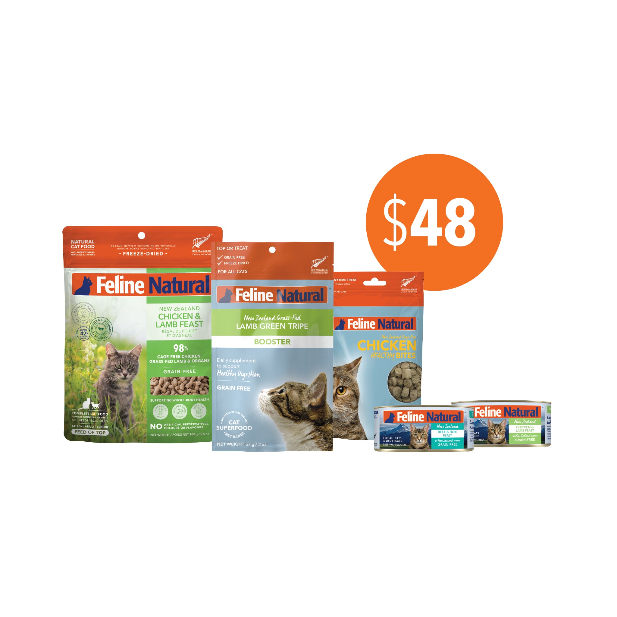 A limited pre-packed Feline Natural Starter Pack, valued at RRP $63.05. The pack includes;