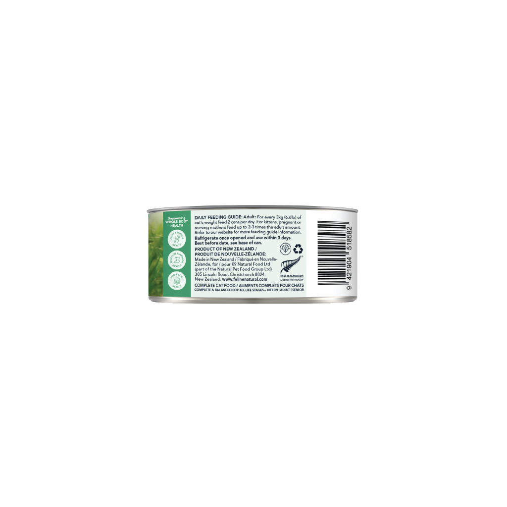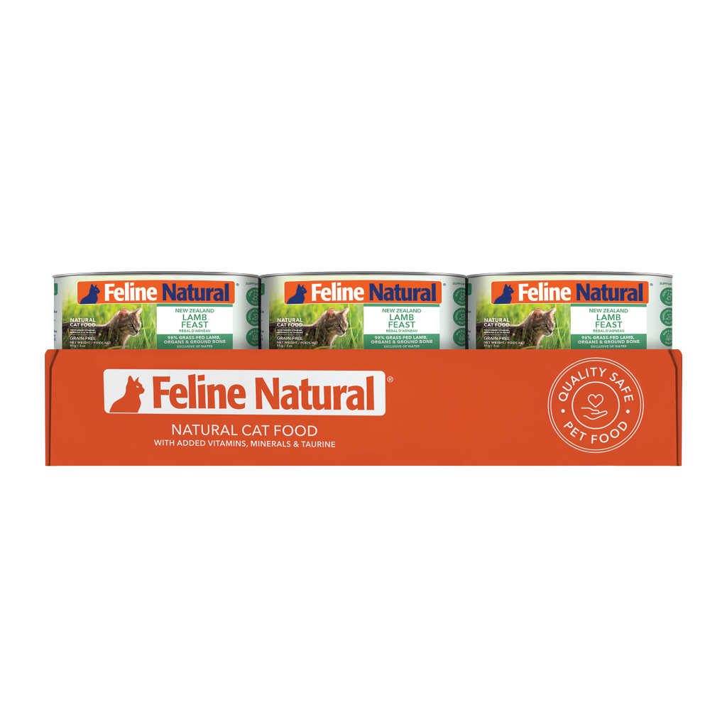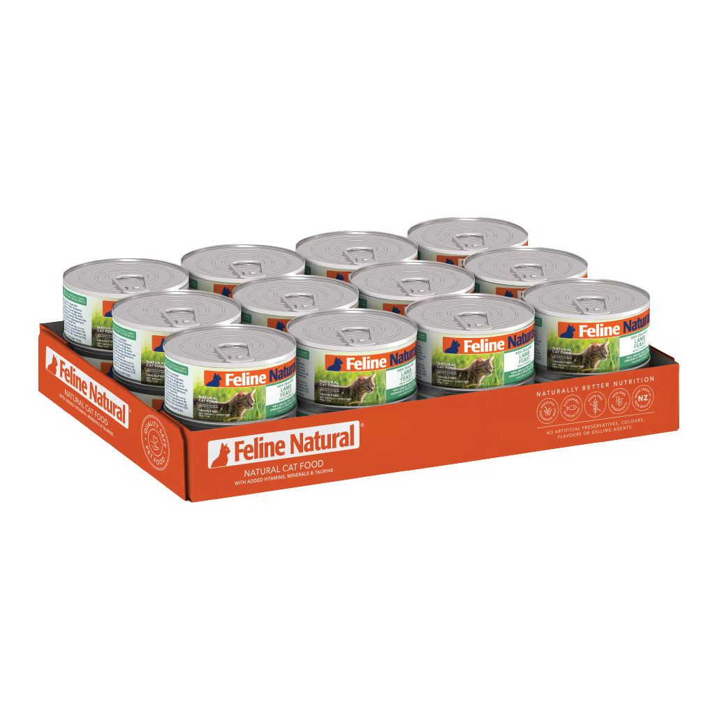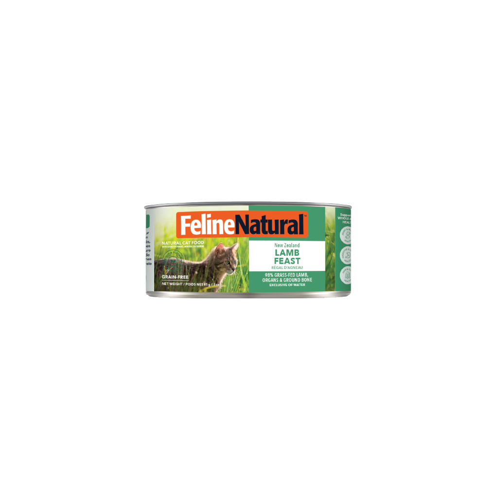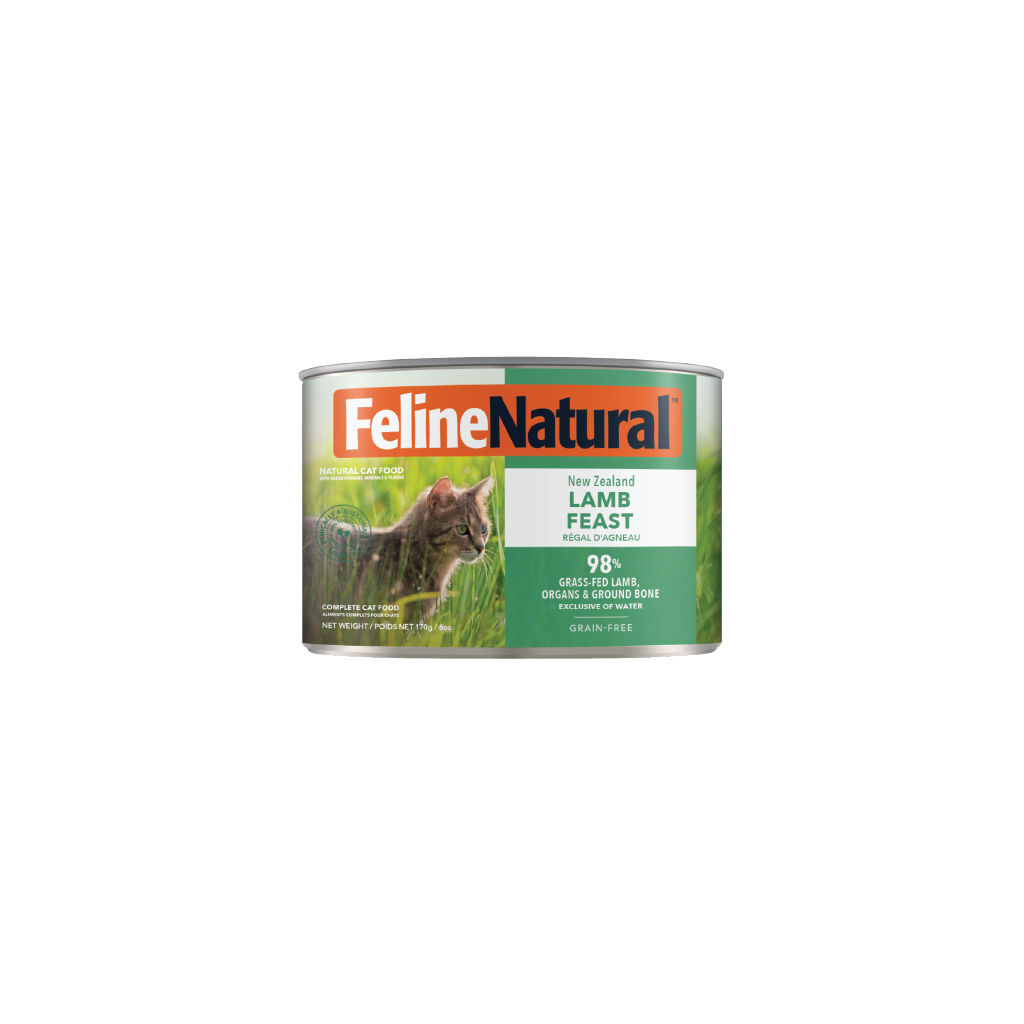 Our complete and balanced New Zealand Lamb Feast Cans contain 98% Grass-fed & Grass-finished Lamb & Organs and Ground Bone, with New Zealand Green Mussels, Flaxseed Flakes, Oils, Kelp, Vitamins, Minerals and Taurine in support of your cat's whole-body health.